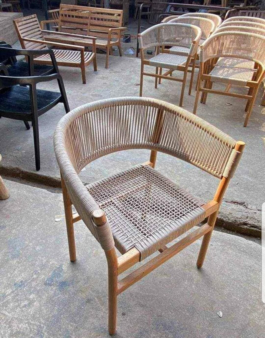 Kursi makan jati natural rotan